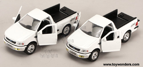5604DW 1997 Ford F-150 Pick Up. 1:40 scale diecast model car. This F150 pickup is 5.25"L x 2"W x 2"H Die cast pick-up truck with free wheel, openable doors/tailgate. Z8. Superior/Sunnyside. 12 pcs/display. 48 pcs/inner. 5604D in WHITE color.