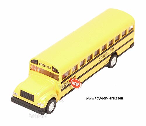 9852D Superior - School Bus. 1:45 scale diecast model. These 8.5" diecast collectible metal yellow school bus have opening front & rear doors, moveable stop sign, and pullback motor action. These yellow school buses are manufactured by Superior/ Sunnyside. 6 pcs per display box. 36 pcs per inner box.