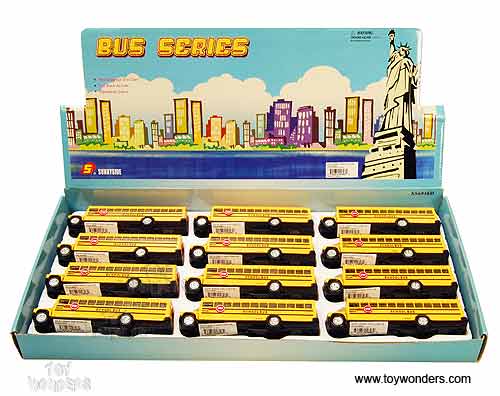 6856D Superior - School Bus. This schoolbus is a 6"L x 1.5"W x 1.75"H diecast collectible metal car with openable side & rear doors, moveable stop sign, and pullback motor action. These yellow school buses are manufactured by Superior/ Sunnyside. 12 pcs per display box. 48 pcs per inner box.