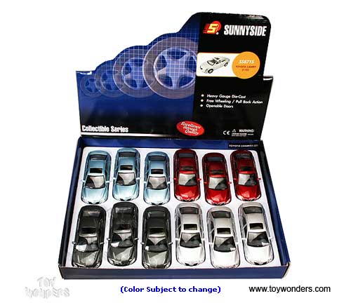 6715D Superior - Toyota Camry Hard Top w/ Sunroof. 1:32 scale diecast collectible model car. This Toyota Camry is 5.75"L x 2.25"W x 1.75"H diecast metal car with openable doors & hood, and pullback motor action. This Toyota Camry is manufactured by Superior/Sunnyside. 12 pcs per display box in assorted colors. 48 pcs per inner box. Z8.
