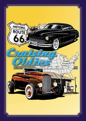 AW-20 Air Waves - Cruising Oldies Rt 66 nostalgic tin sign. Route 66 Collector metal signs. A collection of yesterday's signs. Great for decorating homes, offices, restaurants, etc. Lithographed steel metal. AW20 size: 11.75" x 16.75". This tin sign is shrink wrapped on to a 12.5" x 19" piece of cardboard for protection during transport.