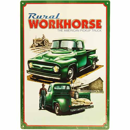 AW-16 Air Waves - Rural Workhorse The American Pickup Truck nostalgic tin sign. Collector metal signs. A collection of yesterday's signs. Great for decorating homes, offices, restaurants, etc. Lithographed steel metal. AW16 size: 11.75" x 16.75". This tin sign is shrink wrapped on to a 12.5" x 19" piece of cardboard for protection during transport.