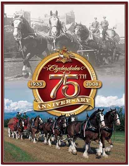 BD-1497 Budweiser Clydesdales 75th Anniversary nostalgic tin sign. Beer collector metal signs. A collection of yesterday's signs. Great for decorating homes, offices, restaurants, etc. Lithographed steel metal. Mounted on a black 20" x 16" card. BD1497