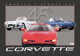 TD-783 Corvette 45th Anniversary tin sign. Collector metal signs. A collection of yesterday's signs. Great for decorating homes, offices, restaurants, etc. TD783 Lithographed steel metal. Mounted on a black 20" x 16" card.