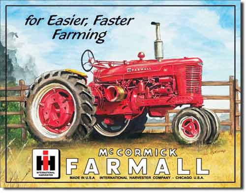 TD825 Farmall Farm Tractor tin sign. Collector metal signs. A collection of yesterday's signs. Great for decorating homes, offices, restaurants, etc. Lithographed steel metal. Mounted on a black 20" x 16" card. TD825.