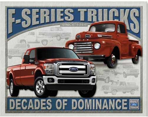TD-1708 Ford - F-Series Trucks tin sign. Bike Collector metal signs. A collection of yesterday's signs. Great for decorating homes, offices, restaurants, etc. Lithographed steel metal. Mounted on a black 20" x 16" card. TD1708.