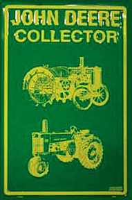 M-350 John Deere Collector nostalgic tin sign. Collector metal signs. A collection of yesterday's signs. Great for decorating homes, offices, restaurants, etc. Lithographed steel metal. M350 size: 12" x 18". This tin sign is shrink wrapped on to a 12.5" x 19" piece of cardboard for protection during transport.