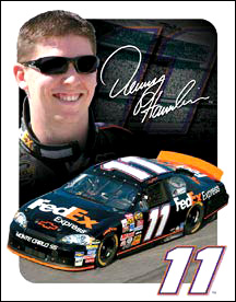 SD-1369 Nascar Denny Hamlin 2006 #11 tin sign. Collector metal signs. A collection of yesterday's signs. Great for decorating homes, offices, restaurants, etc. Lithographed steel metal. SD1369 measures 12.5" x 16", and mounted on a black 16" x 20" card.
