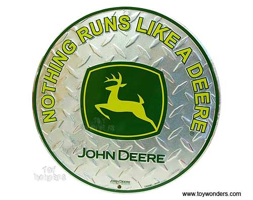 RD-60 Nothing Runs Like A Deere Silver nostalgic round diamond tin sign. John Deere Collector metal signs. A collection of yesterday's signs. Great for decorating homes, offices, restaurants, etc. Lithographed steel metal. RD60 measures 12" diameter. This tin sign is shrink wrapped on to a 12.5" x 19" piece of cardboard for protection during transport.