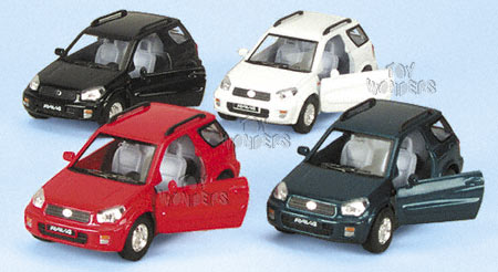 5041D Toyota Rav4, 1:32 scale. This Toyota Rav 4 is a 5" long diecast metal SUV with pullback motor action and opening doors. This Toyota Rav-4 is manufactured by Kinsmart. 12 pcs per display box and in assorted colors. 72 pcs per inner box.