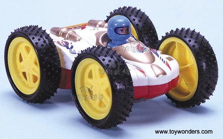 62191 Tumbling Car. 6" 2-in-1 vehicle with rollover stunt action. High performance oversized tires allow the vehicle to rollover and roll off everything in its way. Requires 3 "AA". Batteries not included. Box size: 6.5"W x 5"H x 3.25"D.