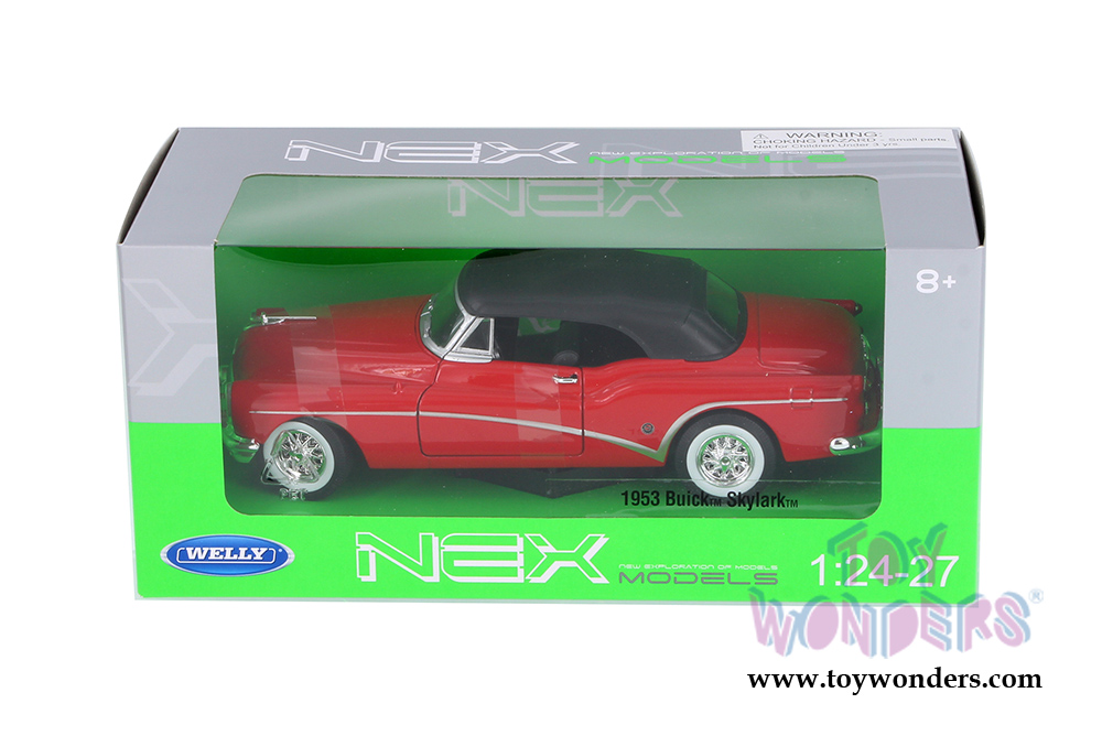 24027HWR Welly - 1953 Buick™ Skylark™ Closed Convertible. This Buick™ is a 7.5"L x 3"W x 2.25"H diecast metal vehicle with opening doors and hood. Steerable wheels, freewheeling. Individually packed in a window box WB. Box measures 9"L x 4.5"W x 4"H. This Buick™ is manufactured by Welly. Item 24027HWR is in RED color.  24 pcs per inner box.