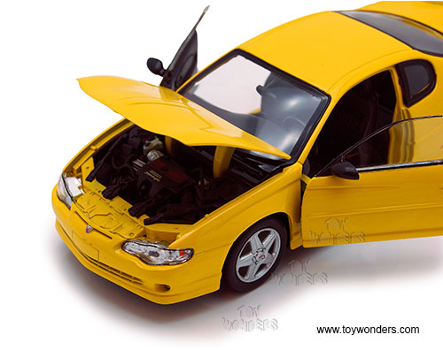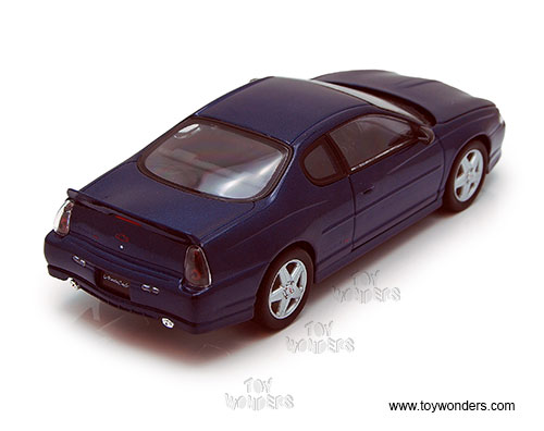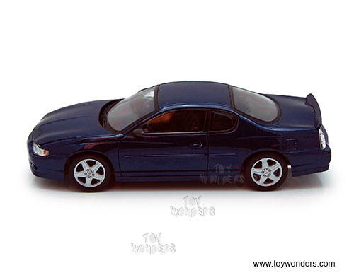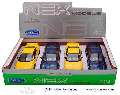 22456/4D Welly - 2004 Chevy Monte Carlo SS Hard Top. 1:24 scale diecast collectible model car. This Chevy Monte Carlo SS is a 7.75"L x 2.75"W x 2.25"H diecast metal car with opening doors & hood and free wheeling. This Chevrolet Monte Carlo SS is manufactured by Welly. 4 pcs per display box in assorted colors. 24 pcs per inner.GM is a trademark of the General Motors Corporation.