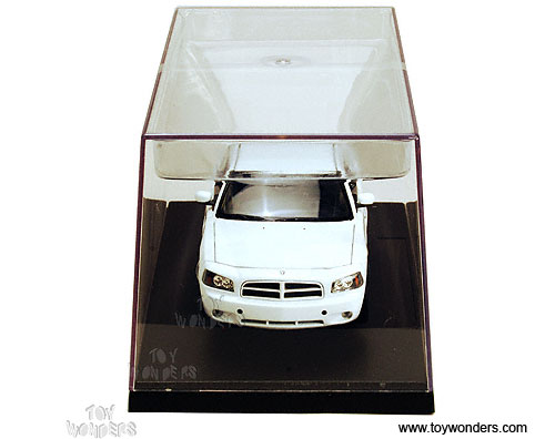 22467 Welly - 2006 Dodge Charger R/T Police Car with accessories. Accessories include police light bar, front bumper guard, & more. 1:24 scale diecast collectible model car. This Dodge Charger R/T is a 7.75"L x 2.75"W x 2"H diecast metal car with free wheeling, openable doors & hood. Individually packed in hard plastic display case. Case measures 9"L x 4.75"W x 4.5"H. This Dodge Charger R/T is manufactured by Welly. Item 22467 is in WHITE color.