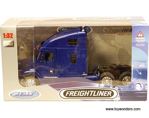 32610W Welly - Freightliner Century Class S/T Tractor Trailer. 1:32 scale diecast collectible model. This Freightliner Century Class S/T is a 10.25"L x 2.75"W x 4.5"H diecast metal with plastic parts and openable hood & doors. This Freightliner Century Class S/T is manufactured by Welly. Individually packed in a window box. Box size: 11.5"L x 4.75"W x 6"H. 32610W is in BLUE color.