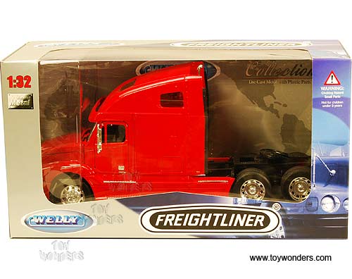 32620WR Welly - Freightliner Columbia Tractor Trailer. 1:32 scale diecast collectible model. This Freightliner Columbia is a 10"L x 2.75"W x 4.5"H diecast metal with plastic parts and openable hood & doors. This Freightliner Columbia is manufactured by Welly. Individually packed in a window box. Box size: 11.5"L x 4.75"W x 6"H.