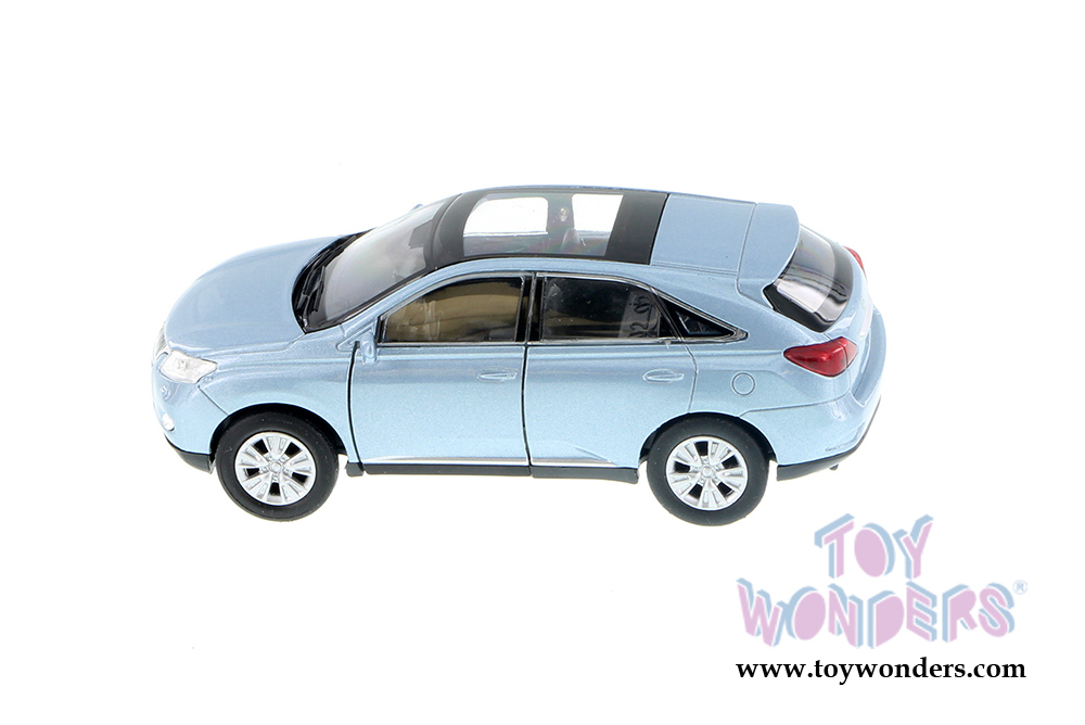 43641D Welly - Lexus RX 450H SUV with Sunroof. 4.5" Long diecast collectible model car. This Lexus RX diecast metal SUV comes with pullback motor action and opening doors. This Lexus RX450 sports utility vehicle is manufactured by Welly. 12 pcs per display box and in assorted colors. 72 pcs per inner box.