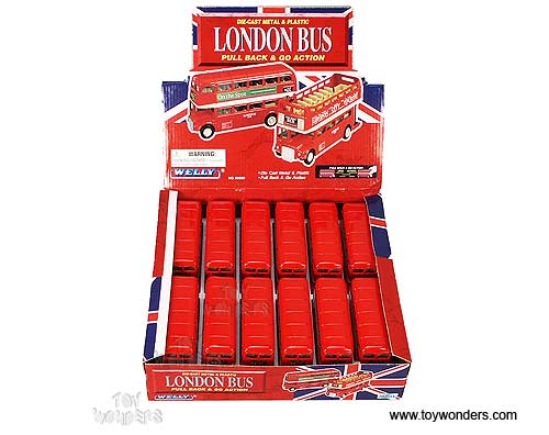 99930D WELLY - London Bus Hard Top. This double decker bus is 4.75" die cast bus, pullback action, hard top, double deck bus. 24 pcs/inner. 99930 in RED color. Z8