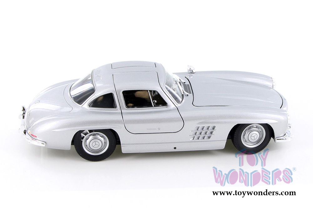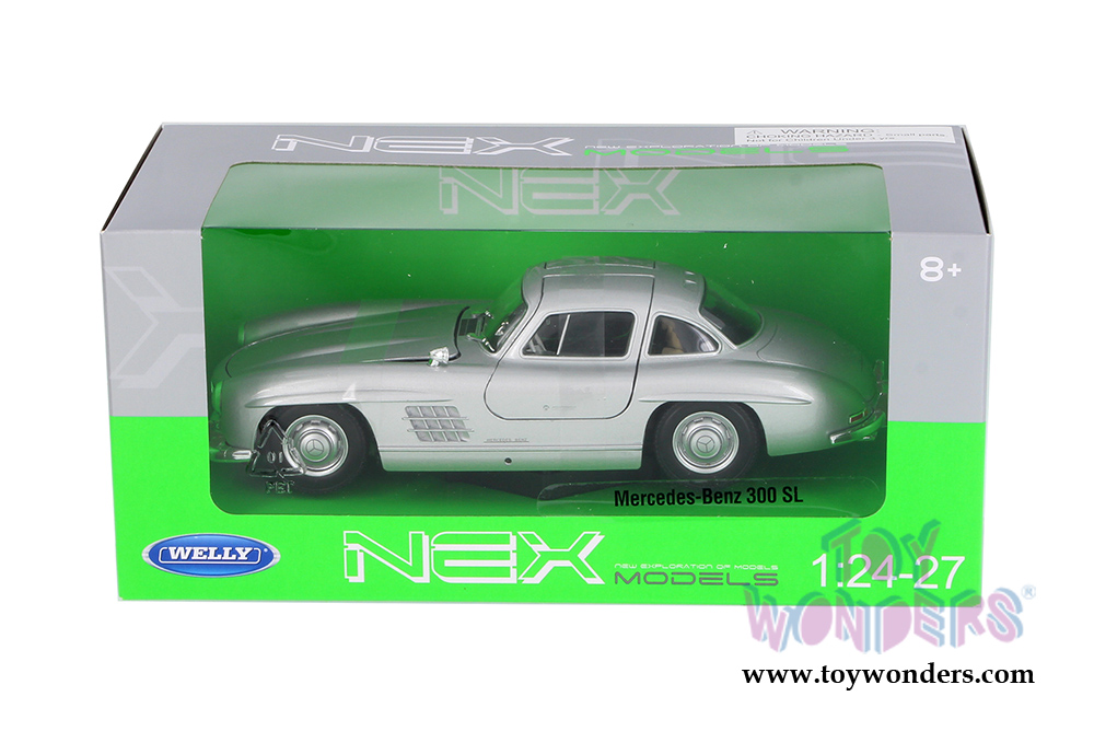 24064WSV Welly - Mercedes-Benz 300 SL Hardtop. 1:24 scale diecast collectible model car. This Mercedes is a 7.5"Lx 3"Wx 2"H diecast metal vehicle with openable gullwing doors and hood. Individually packed in a window box. Window Box measures 9"L x 4.5"W x 4"H. This Mercedes-Benz is manufactured by Welly. Item 24064WSV is SILVER in color.