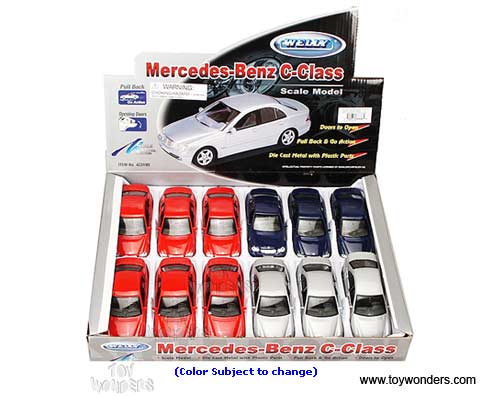 42319D Welly - Mercedes-Benz C-Class Hard Top. 1:34 - 1:39 scale diecast collectible model car. This Mercedes Benz is a 4.5"Lx 1.75"Wx 1.5"H die cast metal car with openable doors and pull back action. This Mercedes-Benz C-Class is manufactured by Welly. 12 pcs per display box in assorted colors. 72 pcs per inner box.