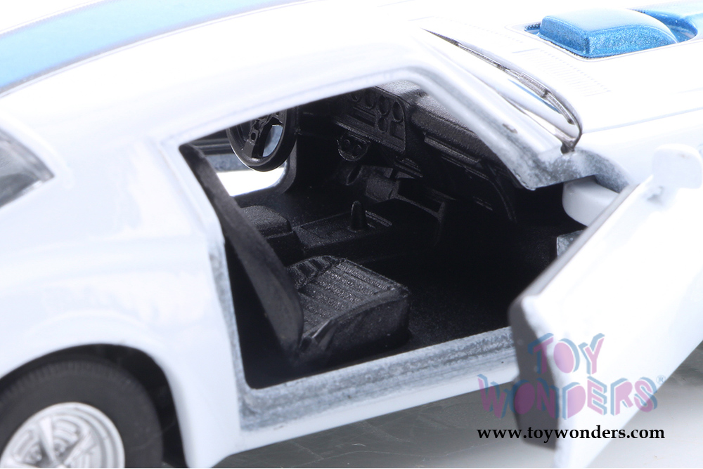 43735D Welly - 1972 Pontiac® Firebird® Trans AM Hardtop. 1/34-1/39 scale diecast collectible model car. This Pontiac Firebird is a 4.5" L diecast metal car with openable doors and pullback motor action. This Pontiac is manufactured by Welly. 12 pcs per display box and in assorted colors. 72 pcs per inner box.
