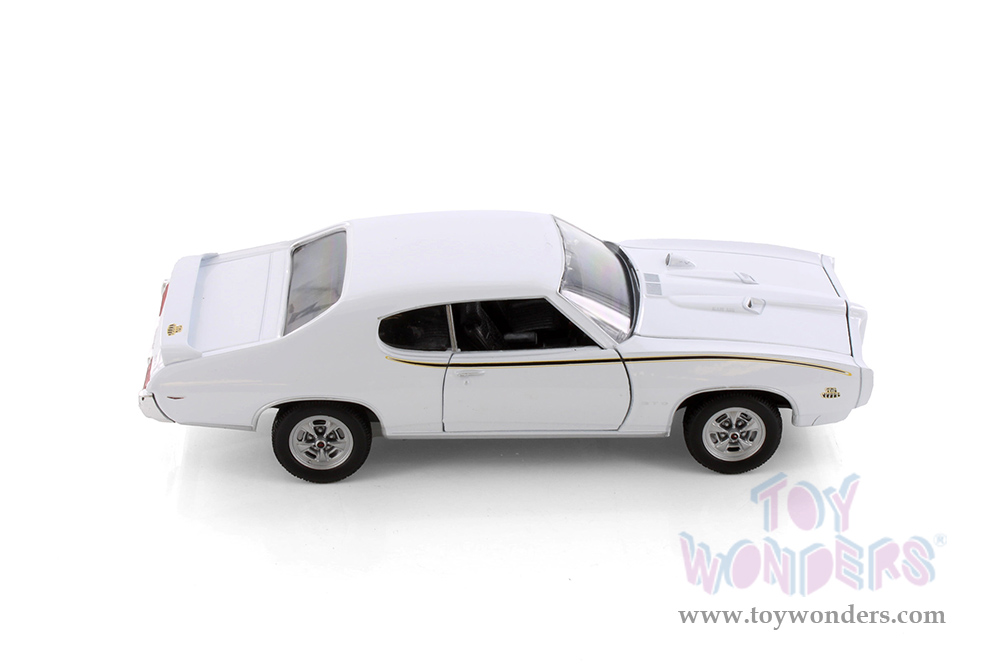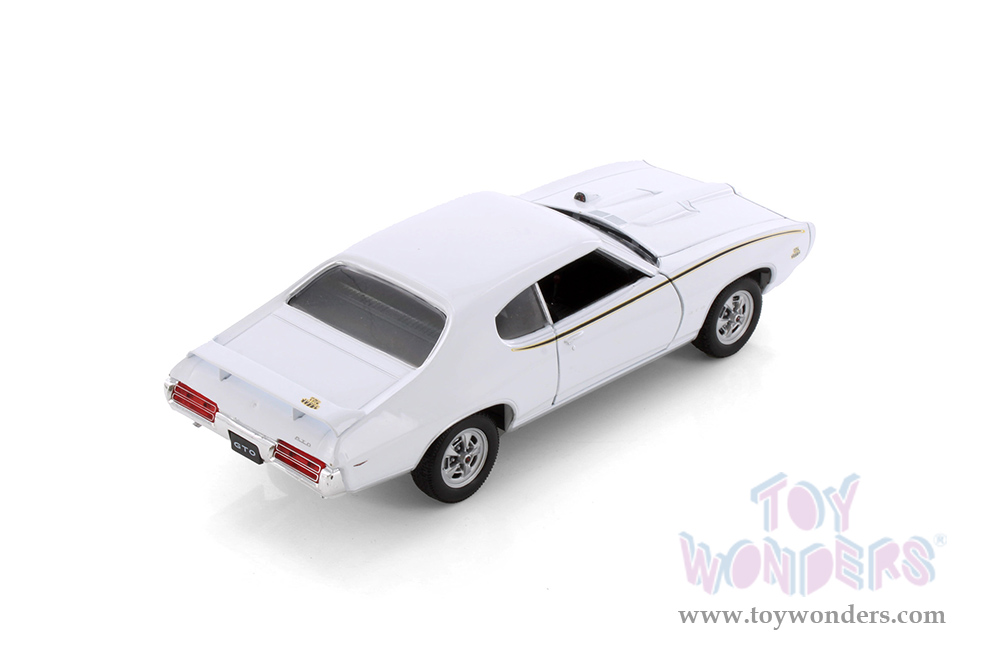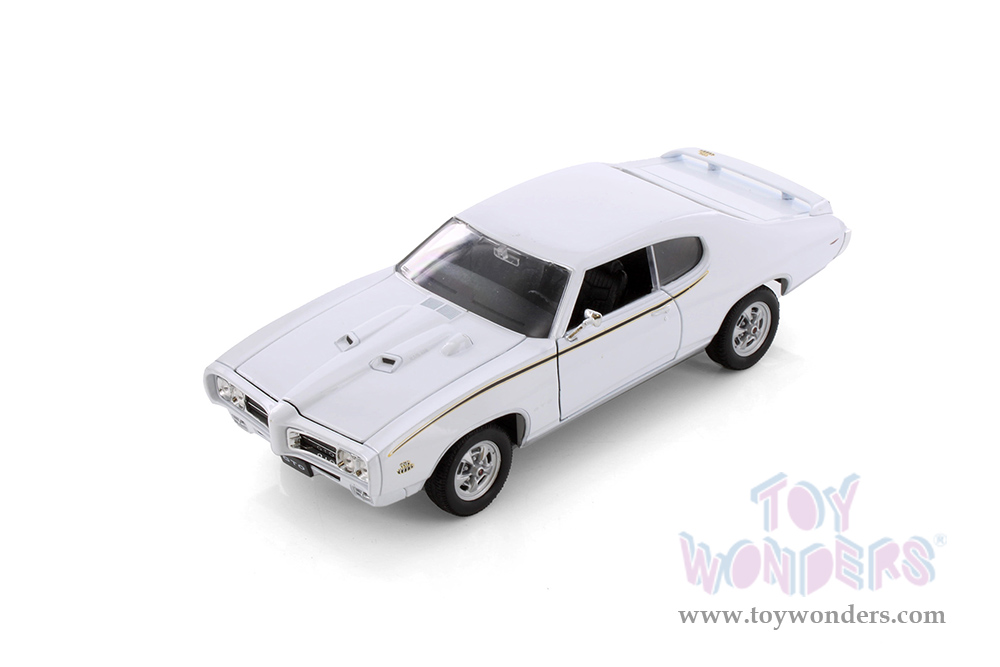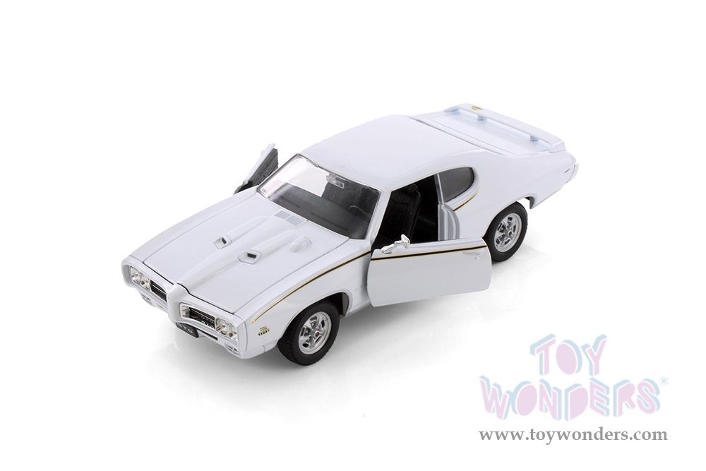 22501W/W Welly - 1969 Pontiac® GTO™ Hardtop. 1:24 scale diecast collectible model car. This Pontiac® GTO™ is a 7.5"L x 2.75"W x 2.25"H diecast metal car with freewheeling, openable doors and hood. This 1969 Pontiac® GTO™ is Manufactured by Welly. Item 22501W/W is white in color. 6 pcs per inner.
