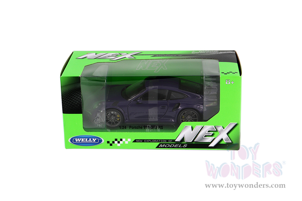 24080WPR Welly - Porsche 911 GT3 RS Hardtop. 1:24 scale diecast collectible model car. This Porsche 911 is a 7.5"L x 3"W x 2"H diecast metal car with freewheeling, openable doors and hood. This Porsche is manufactured by Welly. Poseable steering, freewheeling. Individually packed in a window box. Window Box measures 9"L x 4.5"W x 4"H. This Porsche is manufactured by Welly. Item 24080WPR is in Purple. 6 pcs per inner.