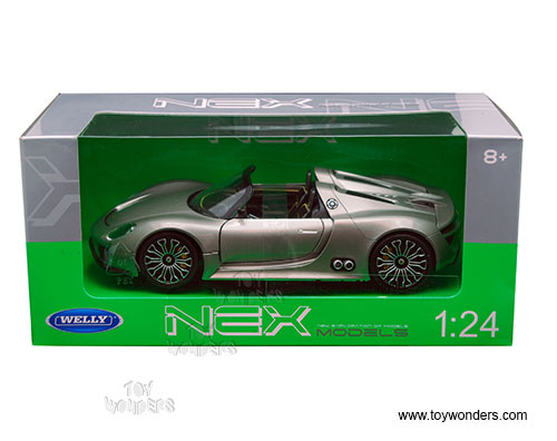Welly - Porsche 918 Spyder Convertible (1/24 scale diecast model car, Gray) 24031WGY