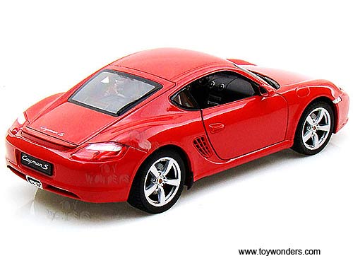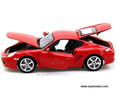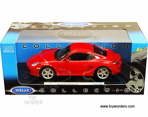 18008 Welly - Porsche Cayman S Hard Top. 1:18 scale diecast collectible model car. This Porsche Cayman S is a 9.25"Lx 3.5"Wx 2.5"H diecast collection car with openable doors, hood & trunk. It features steerable front wheels, detail components, and is mounted on a display plaque. This Porsche Cayman S is manufactured by Welly. 18008 is in RED color. Individually packed in a window box. Box size: 13"Lx 6.25"Wx 5.25"H.