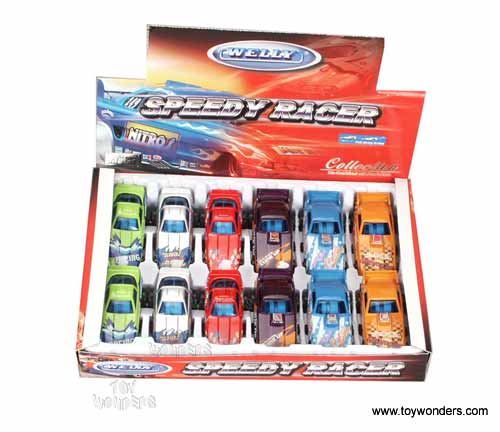 98640D Welly - Speedy Racer. 3" long diecast metal sports car. Pull-string action.This Speedy Racer is manufactured by WELLY.12 pcs per display box in asstd. colors.