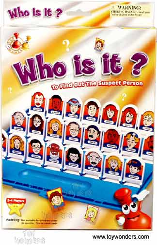 3305 Who is it? 9.75" board holds pictures of people. The object is for one team to reveal the hidden person the other team has picked with a series of questions. Box size: 7.5"W x 10"H x1.25"D.