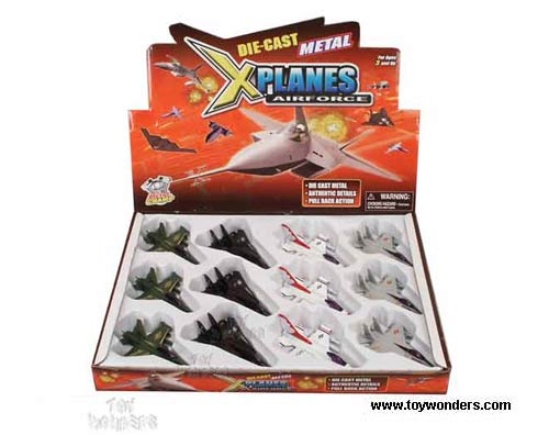 51235 X Planes Airforce Commander. 4.25" diecast planes and jets. These X-Force fighter jets have pull back motor action. 12 pcs per display box and in assorted colors and styles. 72 pcs per inner box.