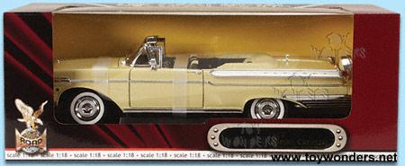 92578YL/1 YATMING ROAD SIGNATURE 1957 Mercury Turnpike Cruiser Convertible. 1:18 scale diecast. This 1957 Mercury Turnpike Cruiser is a 12"Lx4"Wx3"H diecast convertible with opening doors/hood, workable steering, and highly detailed engine and interior. Sits on a plaque. Deluxe Edition. This 57 Ford Mercury is manufactured by Yat Ming. 6 pcs per inner box. 92578 in YELLOW color (BEIGE like color). Individually packed in a window box.