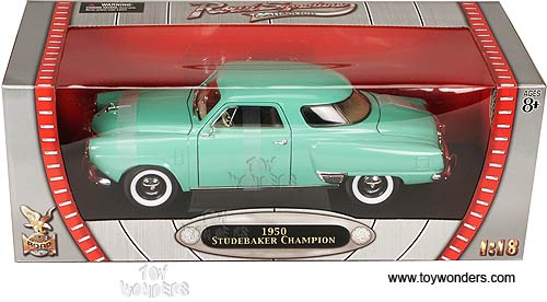 92478 Yat Ming Road Signature - 1950 Studebaker Champion Hard Top. 1:18 scale diecast collectible model car. This Studebaker Champion is a 10.25"Lx 3.5"Wx 3"H die cast metal car with openable hood, doors & trunk, free wheels. Sits on a display plaque. Road Signature collection. The Studebaker Champion is manufactured by YatMing. 92478 is in GREEN color. Individually packed in a window box. Box size: 14.25"Lx 5.75"Wx 5.25"H.