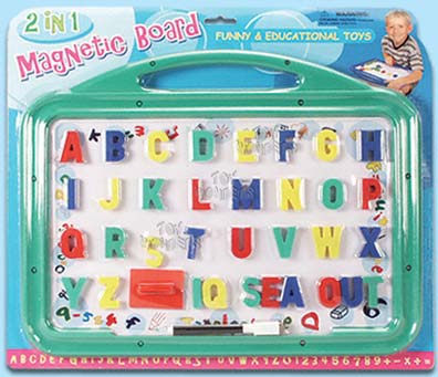 110AB 2 In 1 Learning Board. Board included stamp accessories, writing/drawing pen, & eraser. Assorted in alphabet letters and numbers. Pkg size: 16.75"Lx 1"Wx 14.5"H.