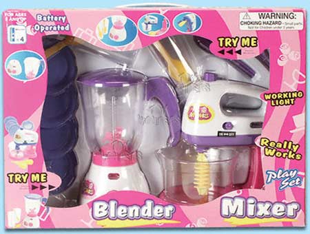 16268 2 In 1 Mixer & Blender. Battery operated mixer and blender with working lights. Also include cups & spoons. Req. 4 "AA" batteries (included).