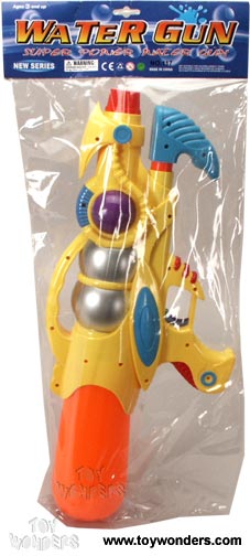 A117 Super Power Water Gun. 20.25" long water gun with pump action. Hang up poly bag package: 10.75"x 26". 12 pcs per inner box.