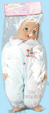 02625A Stuffed Doll. 21" soft stuffed baby boy doll. Makes crying and laughting sounds. Also say mom/dad. Vinyl arms, leg, and head. Sleeping eyes. Package size: 25" x 8".