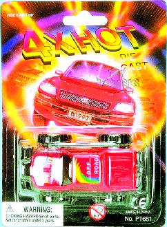 661 4X Hot 3.25" die cast metal free wheeling vehicles in hot assorted colors. card size: 4.75"x6.5". 48 pcs/inner.