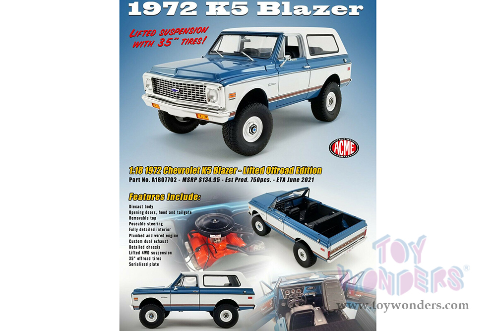 Acme - Chevrolet® K5 Blazer - Lifted Version (1972, 1/18 scale diecast model car, Blue/White) A1807702