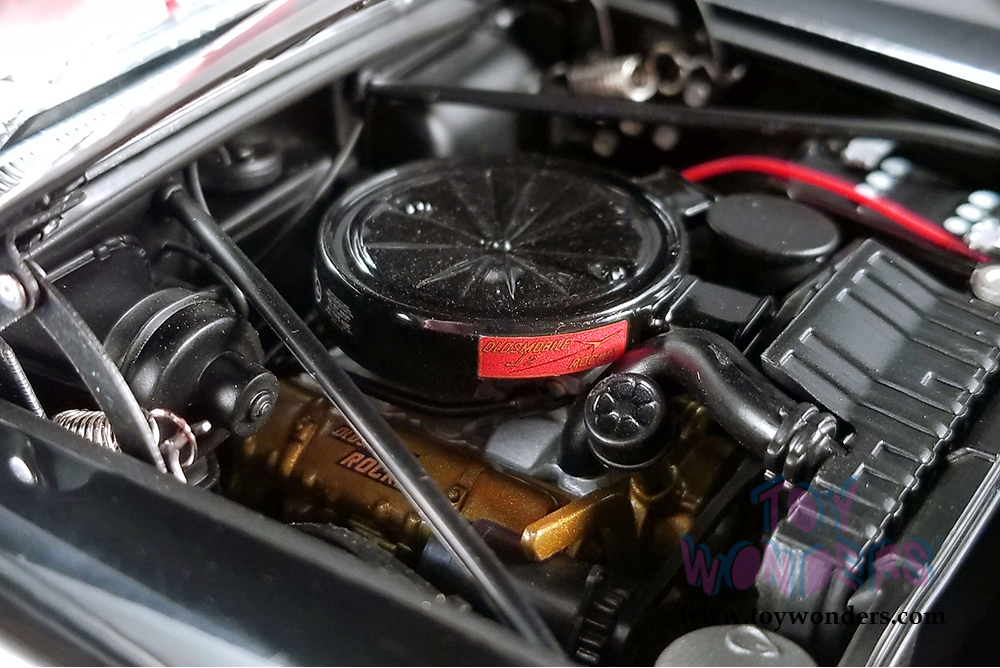 This Oldsmobile comes with opening doors, hood, and trunk. Manufactured by Acme. Individually packed in decorated a box. Box size: 14"L x 6.75"W x 5.25"H. Limited Edition to 762 pcs. Item 1808004 is in BLACK.
