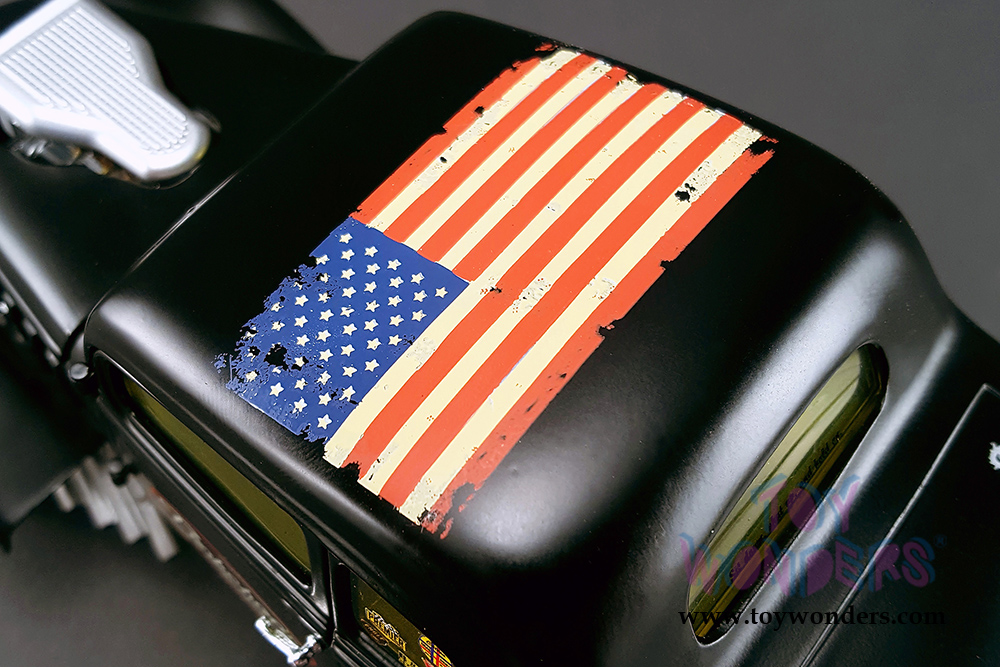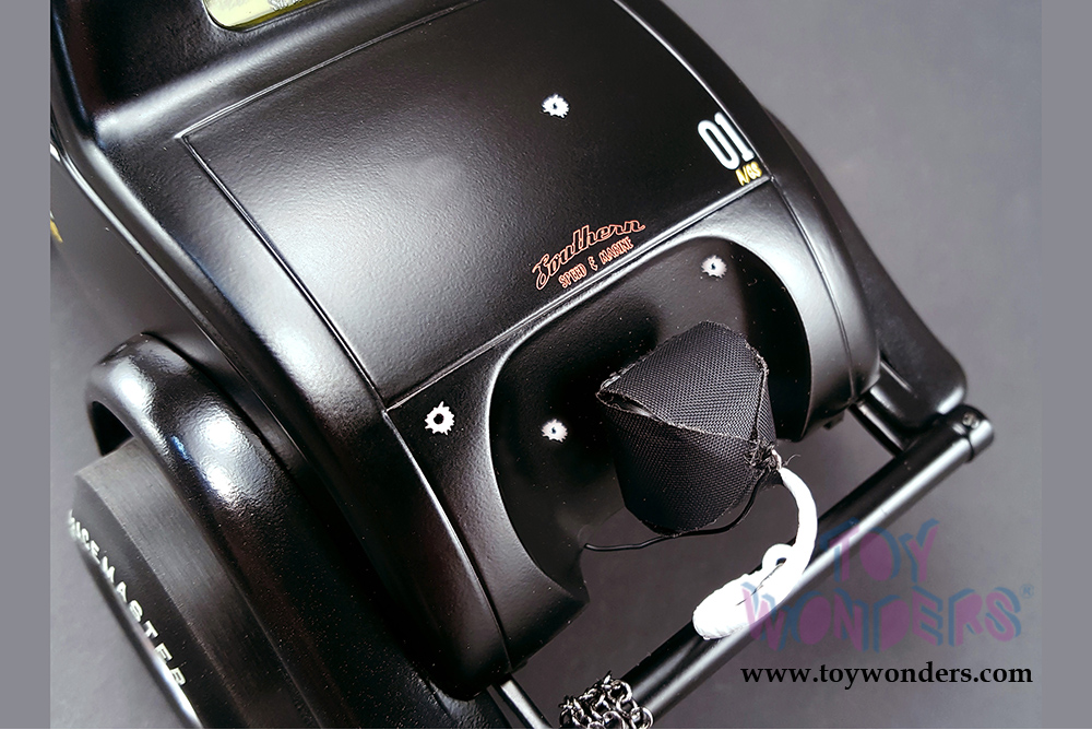 1800907 Acme - Pork Chop's 1933 Willys Gasser Jailbreak. 1:18 scale diecast collectible model car. This Gasser Jailbreak oldies car is a 9"L x 3.75"W x 4"H diecast metal car with openable doors, removable hood, free wheels and workable steering. Highly detailed engine and components. Limited Edition to 960 pcs. This 1933 Willys Gasser is manufactured by ACME. Box size is 10.75"L x 6.5"W x 6.25"H. Item 1800907 is in BLACK.