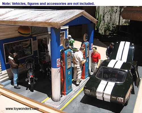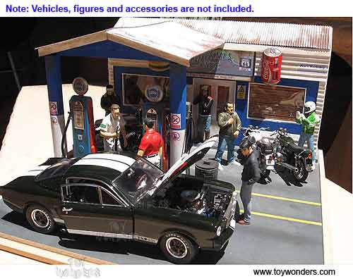 American Diorama Buildings - Gas Station with Working Lights (1/18 scale) 77739