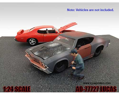 Hand painted cold-cast resin. This 2" figure is great for decorating 1:24 scale cars auto body shop, and dioramas. Manufactured by American Diorama. Individually packed in a blister card. Card size: 3.75" x 7.5". 12 pcs per inner. Note: Vehicles are not included.