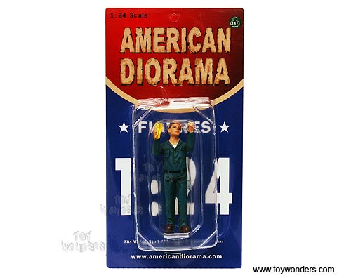 Hand painted cold-cast resin. This 3" figure is great for decorating 1:24 scale cars and dioramas. Manufactured by American Diorama. Individually packed in a blister card. Card size: 3.75" x 7.5". Note: Vehicle is not included.