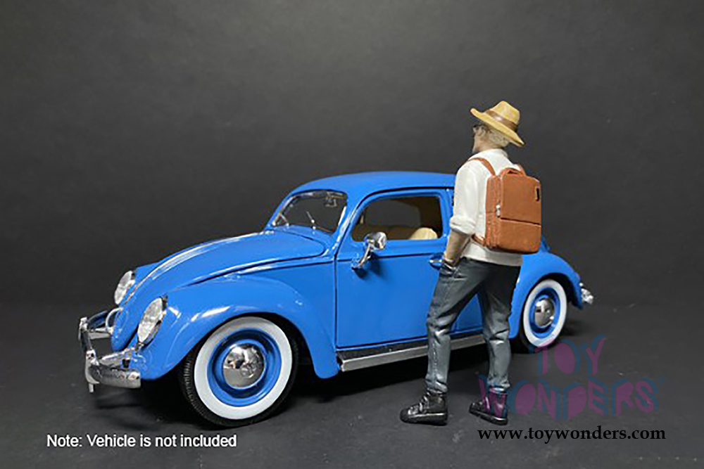 38323 American Diorama Figurine - 1:24 scale Partygoers Figure III in gray pants and white shirt. Hand painted polyresin material. This 3" tall figure is great for decorating 1:24 scale cars and dioramas. Manufactured by American Diorama. Individually packed in a blister card. Card size: 4" x 7.5". 12 pcs per inner box. Note: Vehicle is not included.