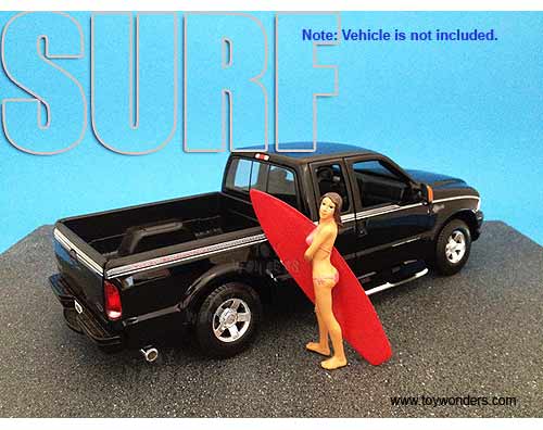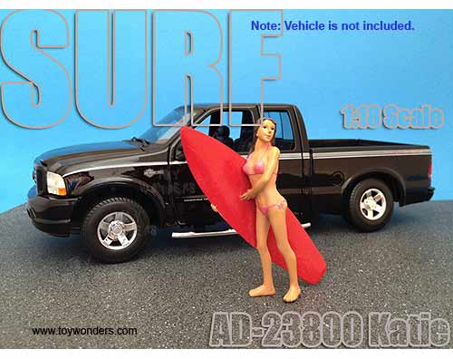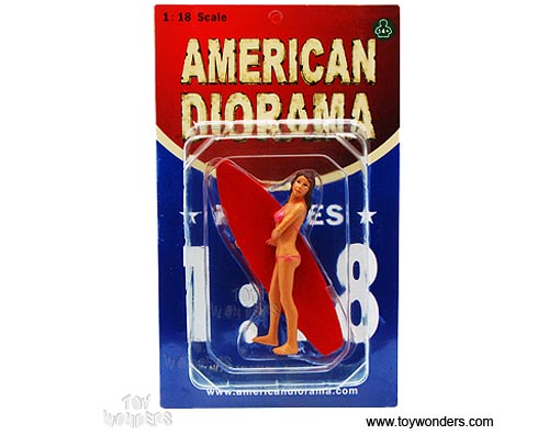 American Diorama Figurine - Surfer Katie Figure w/ Surfboard (1/18 scale, Pink) 23800