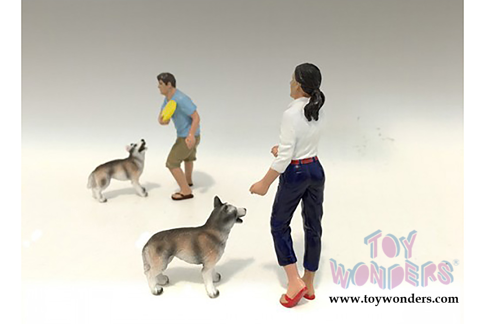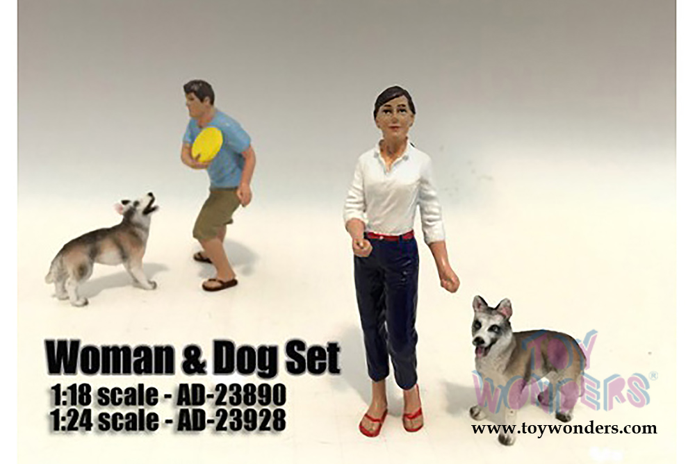 American Diorama Figurine - Woman and Dog set of 2 (1/24 scale, White with Blue) 23928