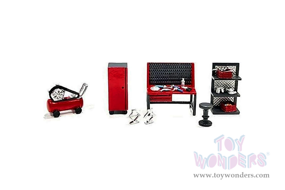 American Diorama/Mijo Exclusives - Metal Tools Set C (7 pc. set, 1/64 scale diecast metal, Red) AD-2419MJ
