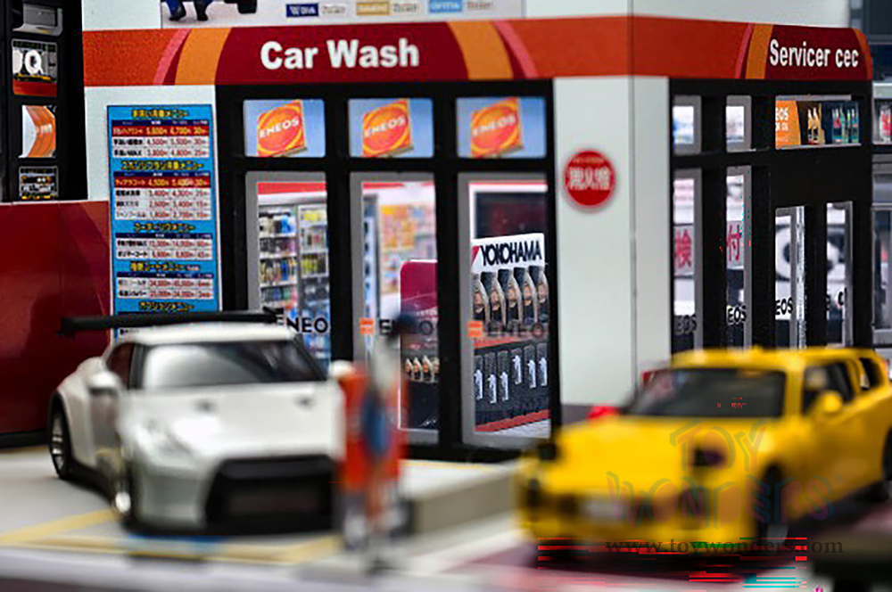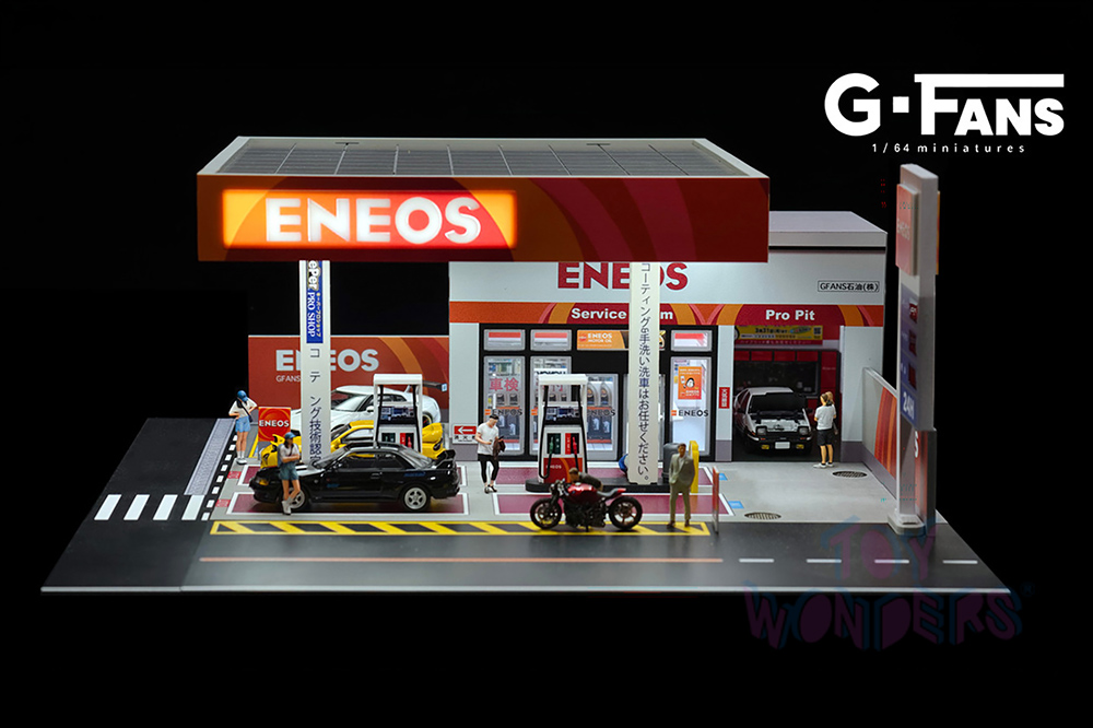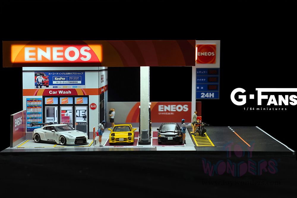 American Diorama X G-Fans - Japan Gas Station with LED Lights and 2 Figure Set (1/64 scale diorama model, Asstd.) AD-710038GF